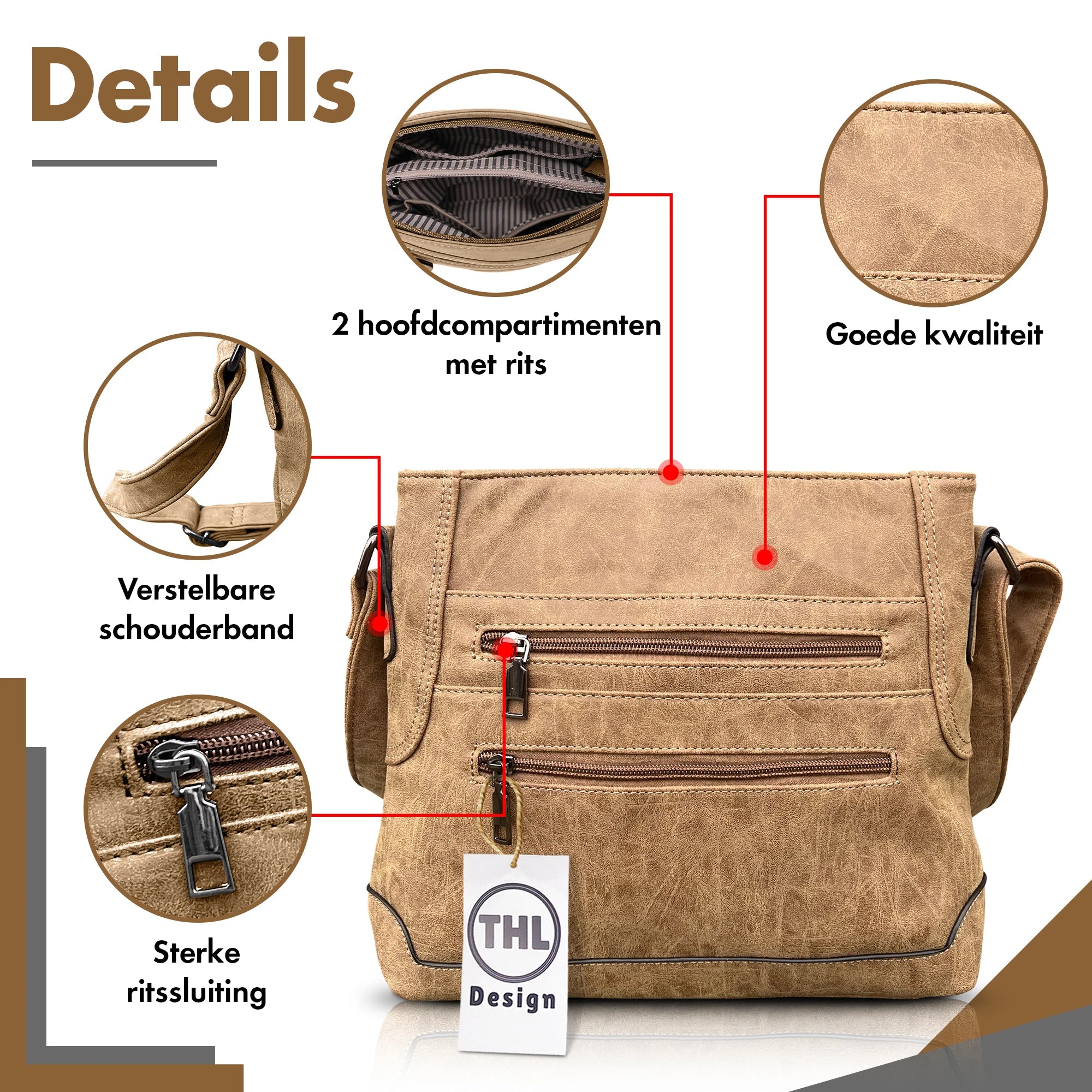 THL Design - Dames schoudertas - Plat Model - Tussenmaat - Veel Vakken - Bruin THL Design - Dames schoudertas - Plat Model - Tussenmaat - Veel Vakken - Bruin