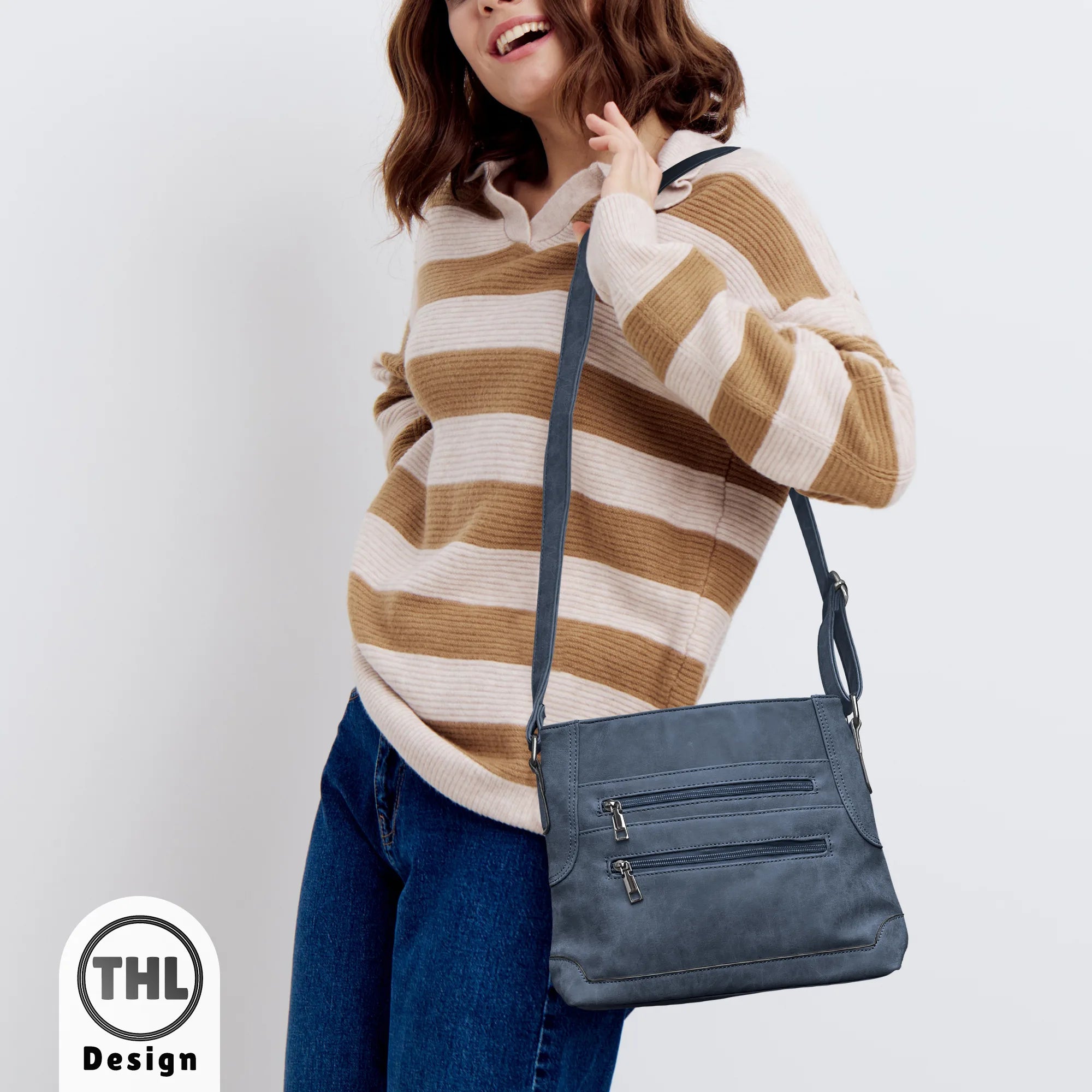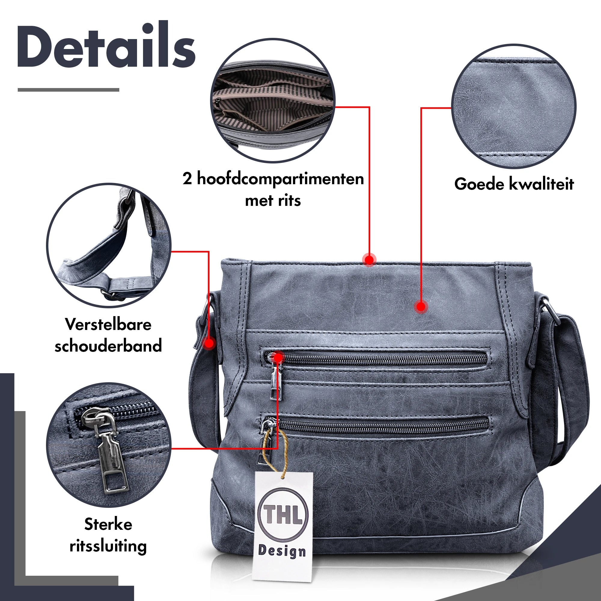 Een handige plat model schoudertas met een goede verstelbare schouderband. De donkerblauwe THL crossbodytas heeft allerlei handig ritsvakken waar je overzichtelijk je spullen in op kunt bergen. Ben jij op zoek naar een tussenmaat schoudertas? Dan is deze tas ideaal voor jou. Je kan de lichtgewicht schoudertas overal mee naar toe nemen ideaal voor een dagje weg, op reis of bijvoorbeeld als je gaat fietsen.