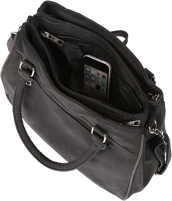 De tas heeft drie ruime hoofdvakken, waardoor je jouw spullen overzichtelijk kunt opbergen. Daarnaast zijn er meerdere kleinere vakken voor sleutels, telefoon en andere kleine items. Alle vakken zijn voorzien van een ritssluiting voor extra veiligheid. De afmetingen zijn 32 x 23 x 12 cm.