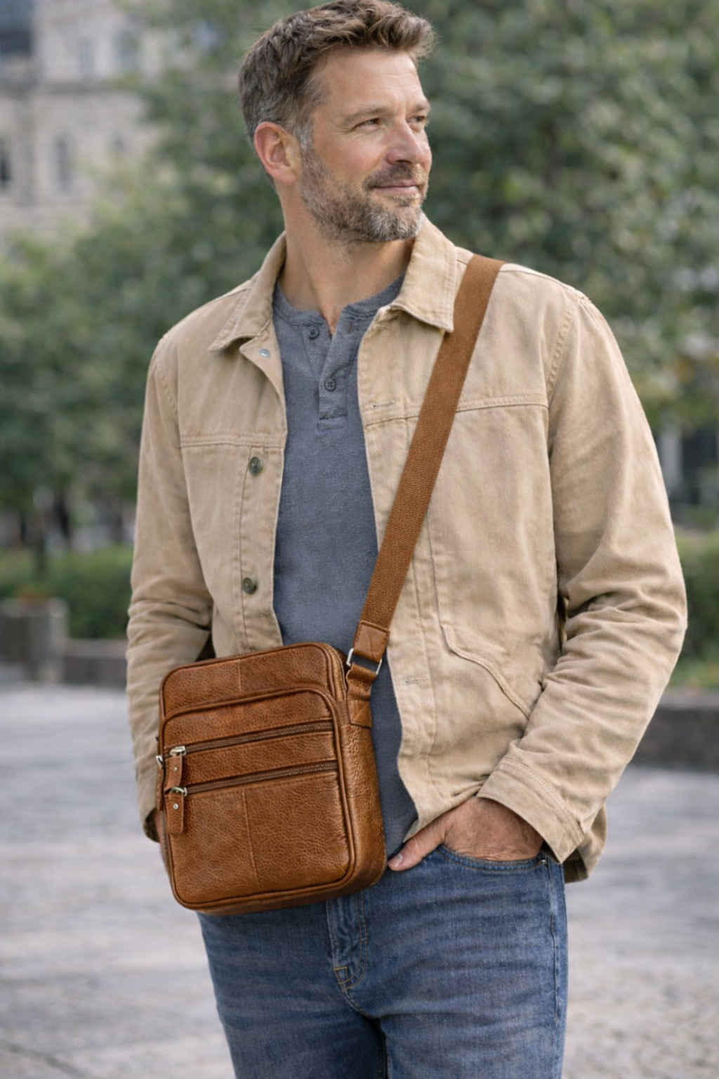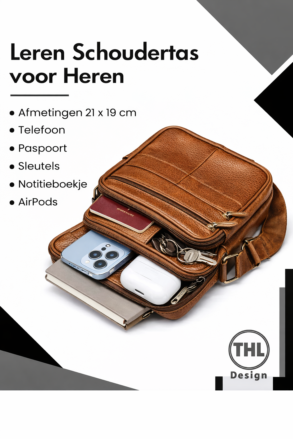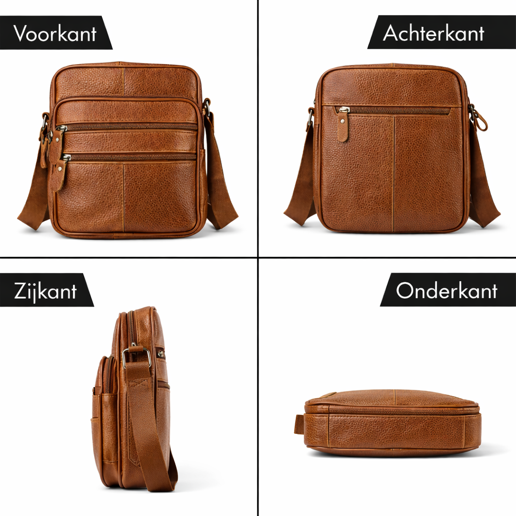 Wil jij al je belangrijke spullen veilig en overzichtelijk bij elkaar hebben? Zoek dan niet verder en bestel deze handige leren schoudertas!