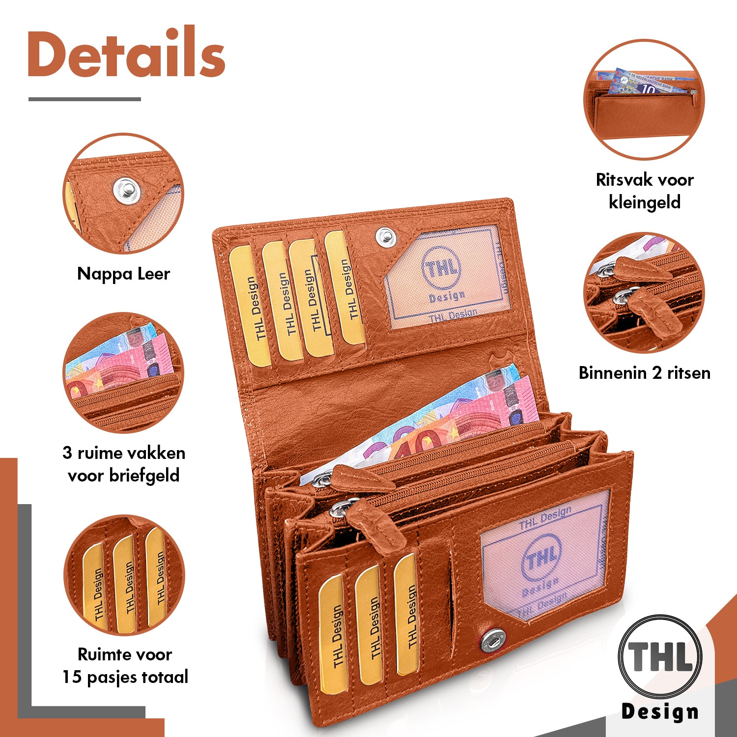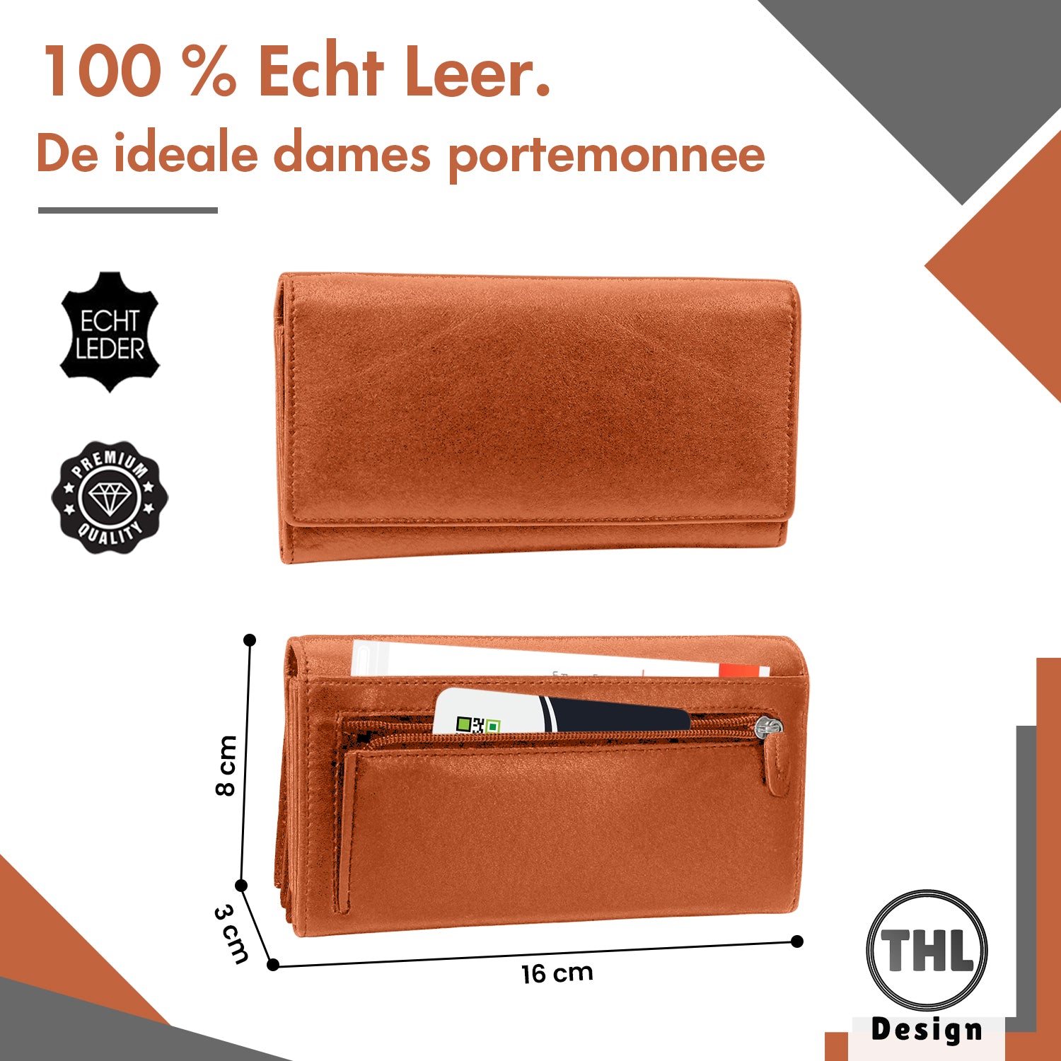 Bent u op zoek naar een echte lederen dames portemonnee? Zoek dan niet verder en bestel deze THL Design lederen harmonica portemonnee.