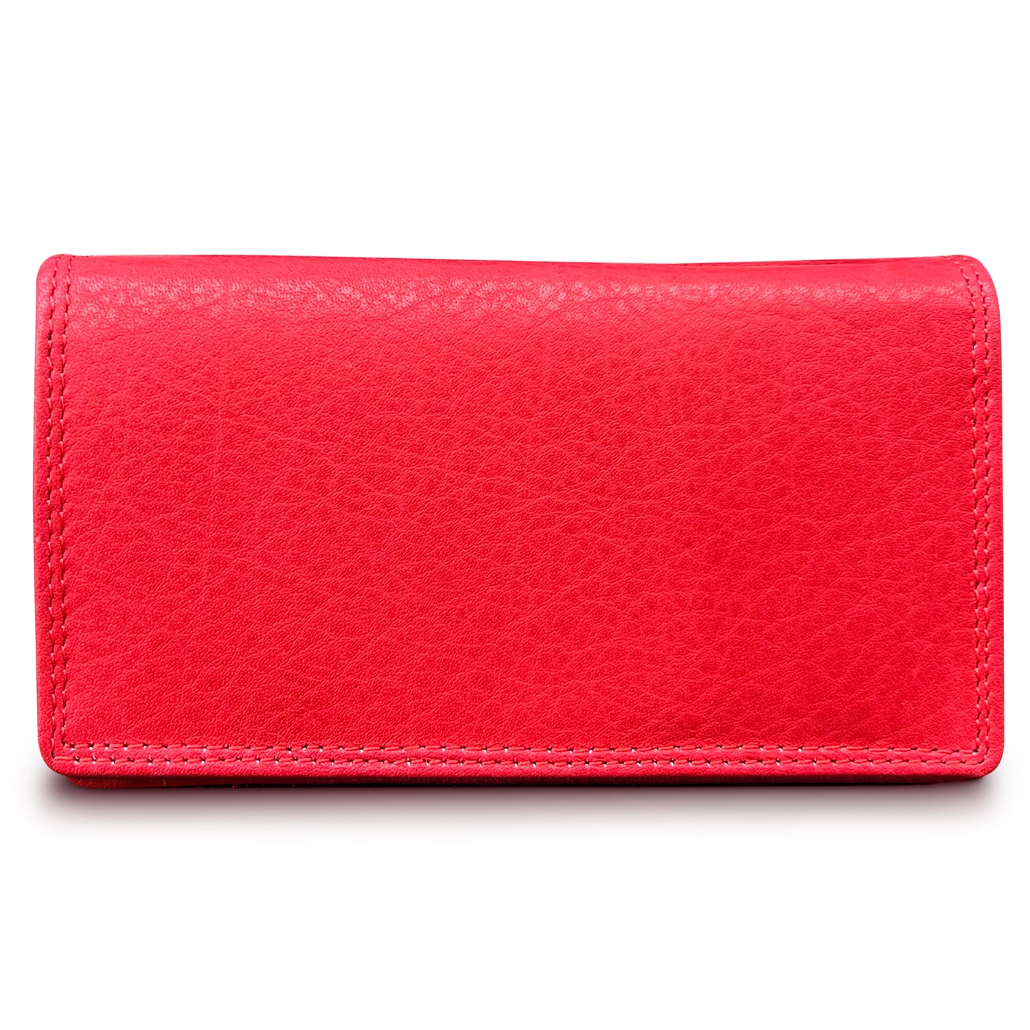 De portemonnee is verkrijgbaar in verschillende kleuren zwart, rood, donkerblauw en bruin.