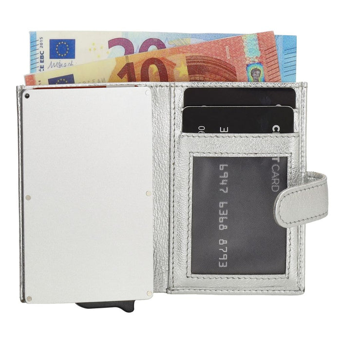 Dankzij de RFID-bescherming zijn je pasjes goed beveiligd tegen skimmen en ongewenst contactloos betalen. Met een compact formaat van 10 x 7 x 2 cm past deze portemonnee in elke broek- of jaszak.