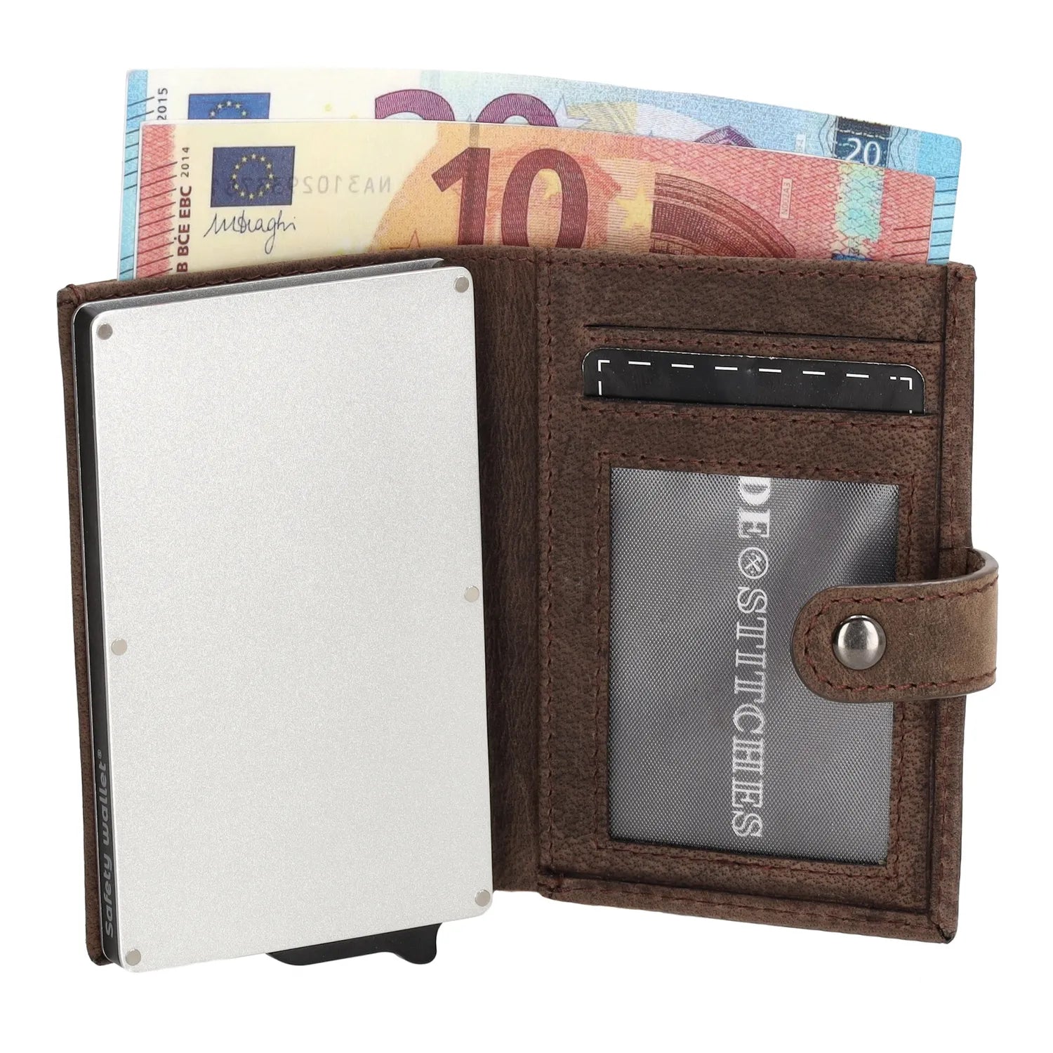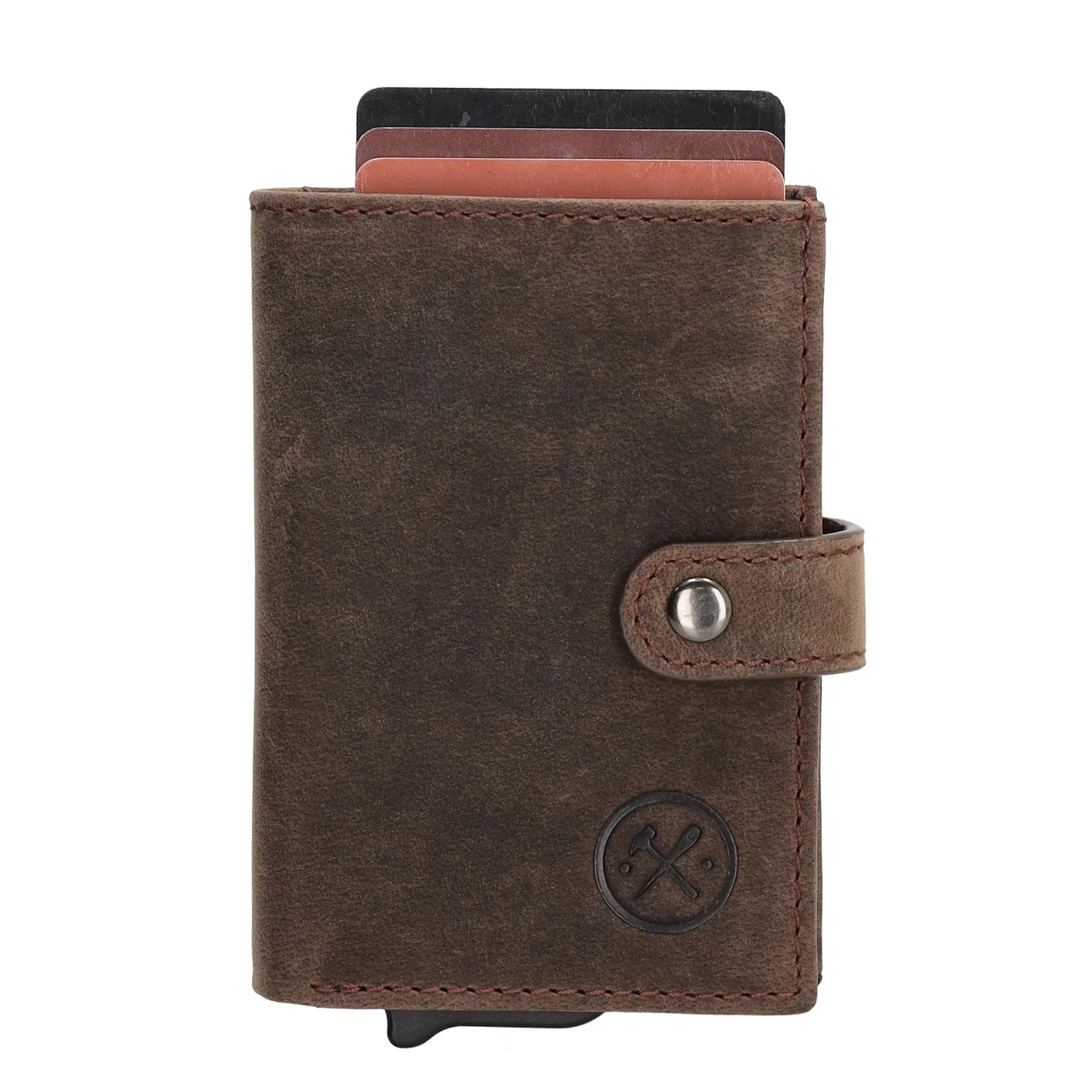 Deze leren pasjeshouder van Hide & Stitches is gemaakt van hoogwaardig vintage leer en biedt ruimte voor 9 pasjes, briefgeld en kleingeld. De uitschuifbare houder maakt snel en makkelijk toegang mogelijk.