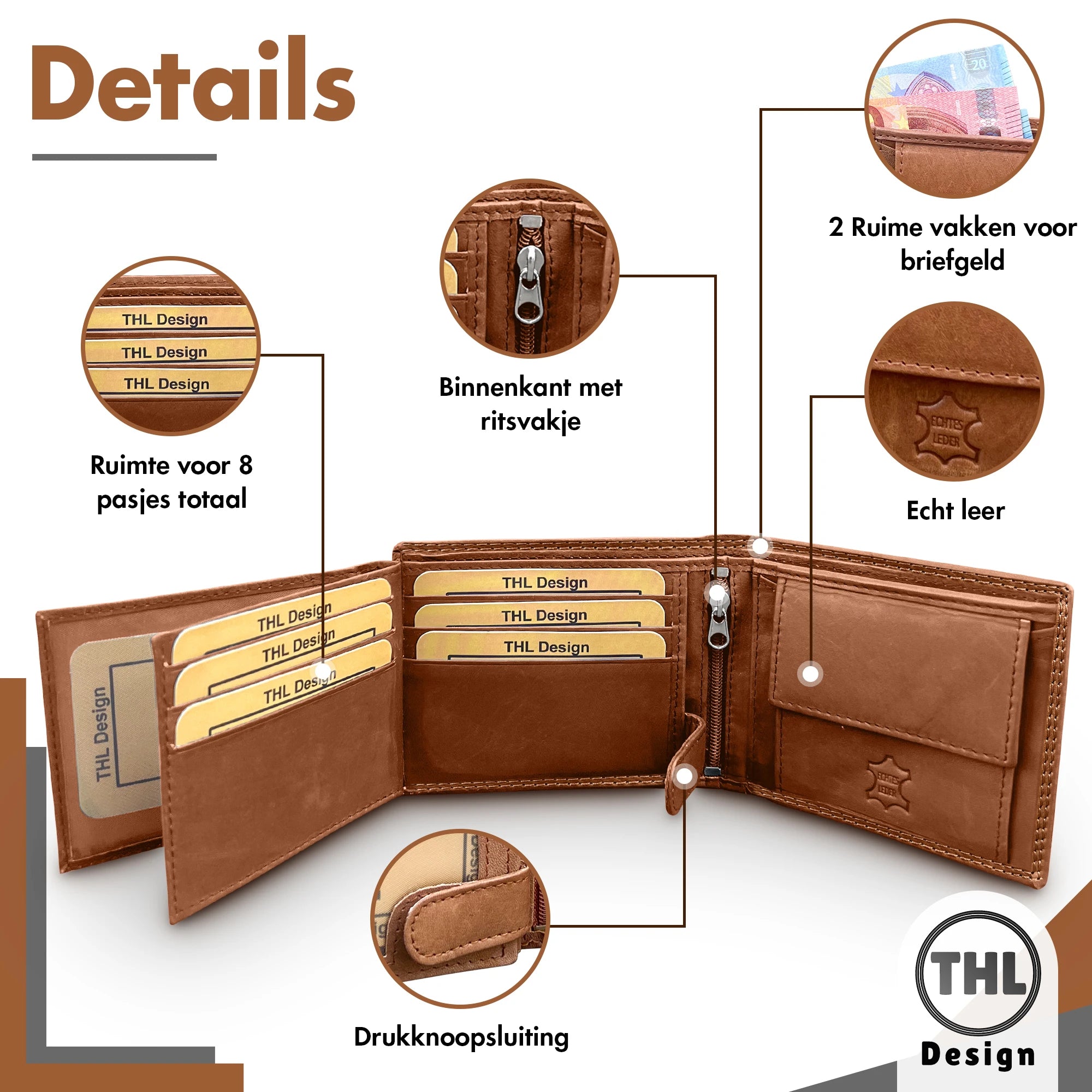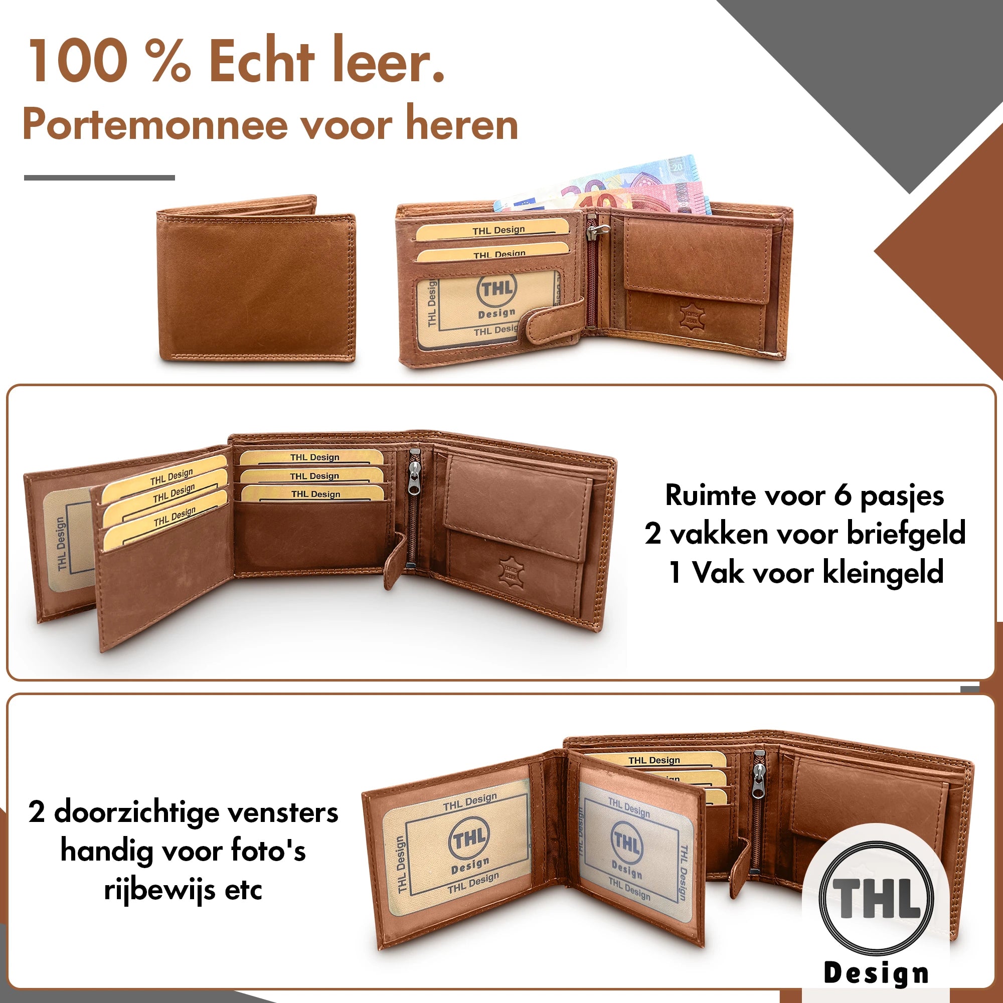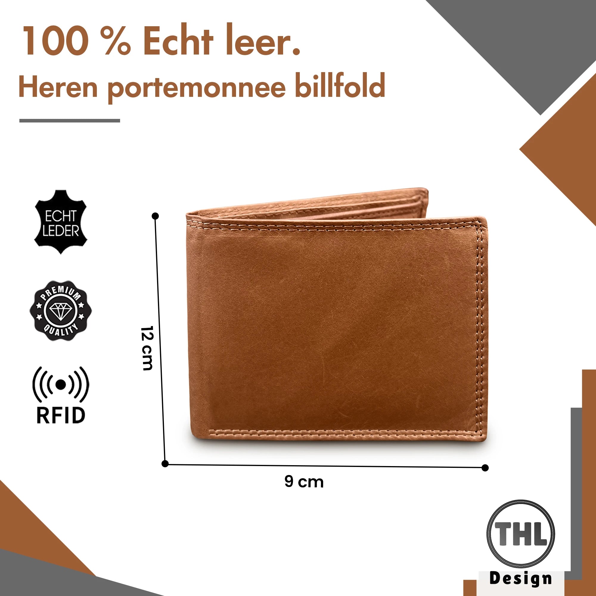 THL Design - Portemonnee Heren - Billfold - Echt Leer THL Design - Portemonnee Heren - Billfold - Echt Leer