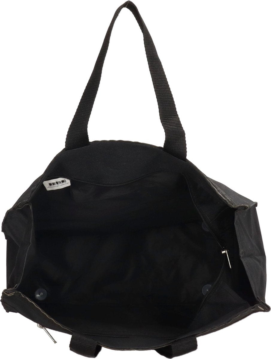 De boodschappentas heeft een ruim hoofdvak met ritssluiting.