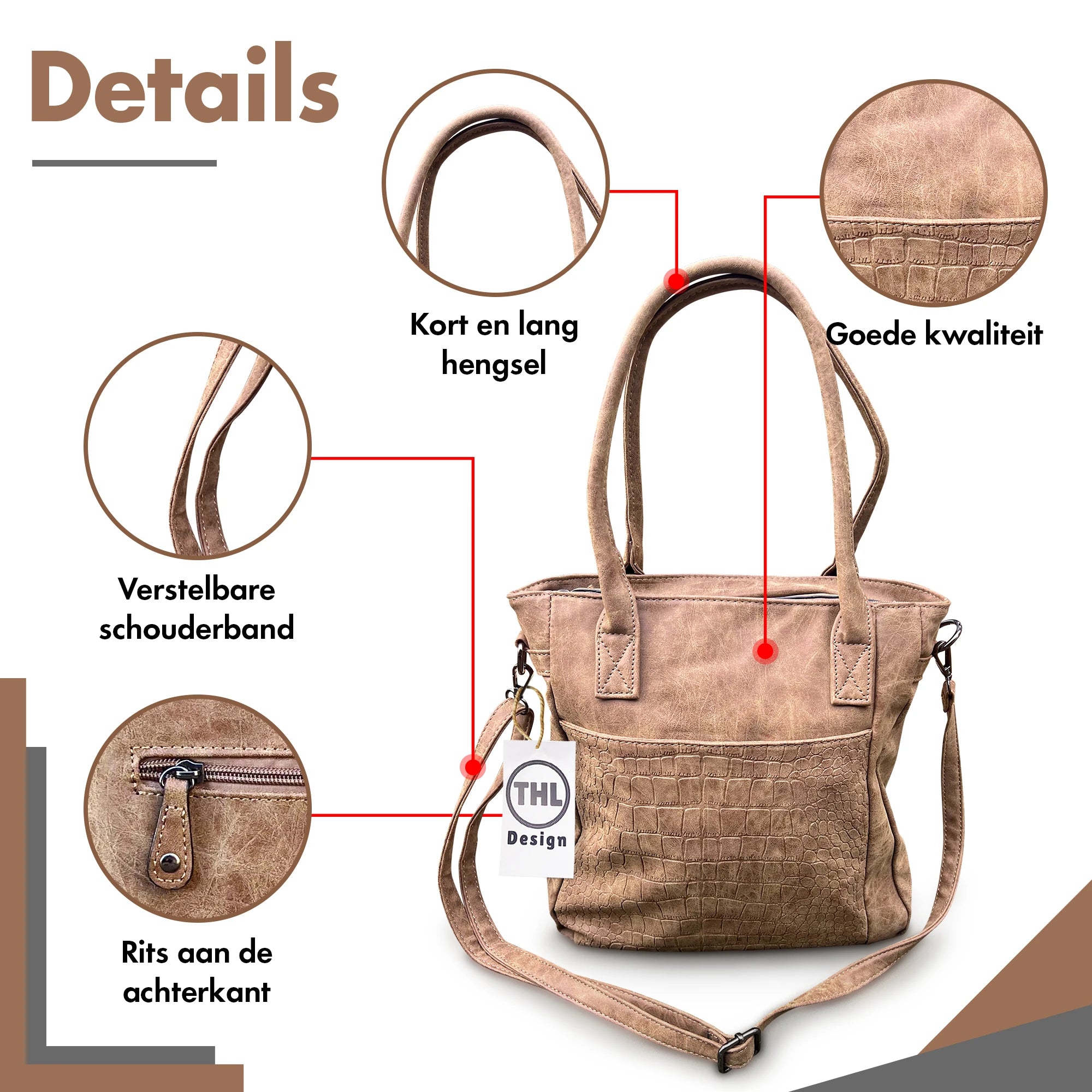 Ben je op zoek naar een compacte dames handtas die er stijlvol uitziet én praktisch in gebruik is? Deze shopper van THL Design is de perfecte combinatie van elegantie en gebruiksgemak. Ideaal voor dagelijks gebruik, werk of een dagje weg.