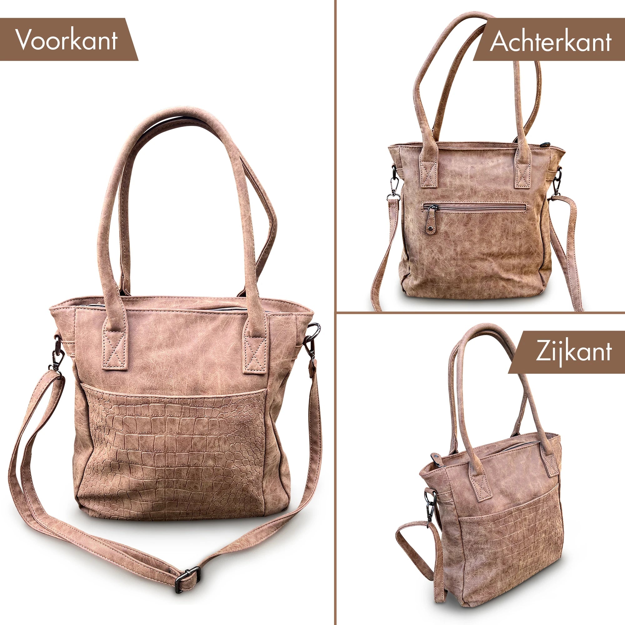 Voorzien van een stevig kort hengsel én een afneembare, verstelbare schouderband. Gemaakt van hoogwaardig kunstleer met een subtiele vintage look. De tas is licht van gewicht, duurzaam en voelt luxe aan – zonder dat je er te veel voor betaalt.
