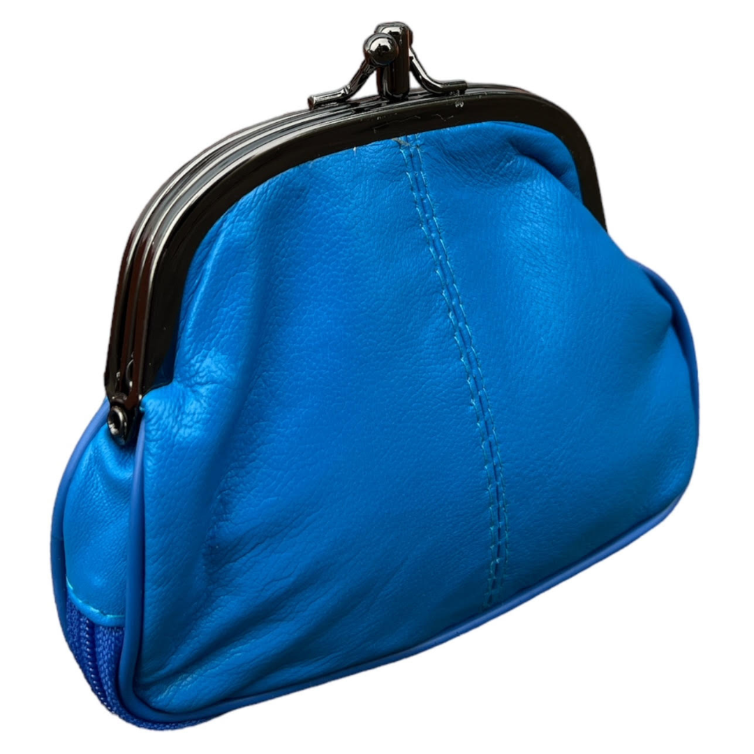 Dit kobalt blauwe leren knipbeursje van THL Design is een compacte en stijlvolle damesportemonnee. Dankzij het handige formaat past deze beugelportemonnee perfect in een kleine tas of jaszak. Ideaal voor een avondje uit of wanneer een grote tas onhandig is.