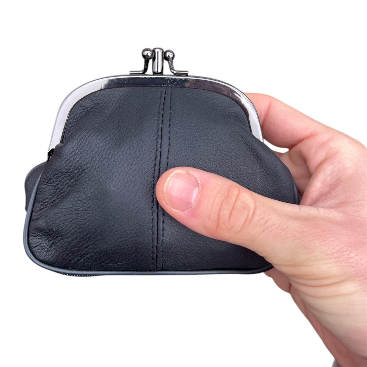 De portemonnee is gemaakt van hoogwaardig echt leer, en heeft een mooie uitstraling. De stevige metalen knipsluiting houdt je geld veilig opgeborgen. Binnenin vind je ruimte voor briefgeld, muntgeld en een extra vak met rits voor een pasje.