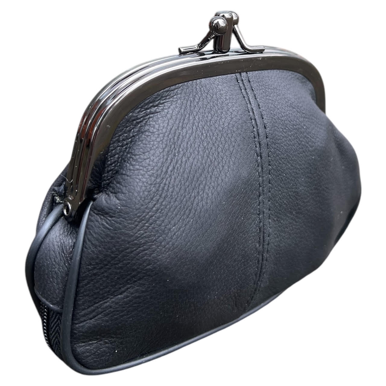 Dit zwarte leren knipbeursje van THL Design is een compacte en stijlvolle damesportemonnee. Dankzij het handige formaat past deze beugelportemonnee perfect in een kleine tas of jaszak. Ideaal voor een avondje uit of wanneer een grote tas onhandig is.