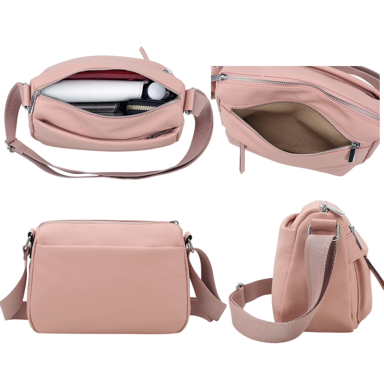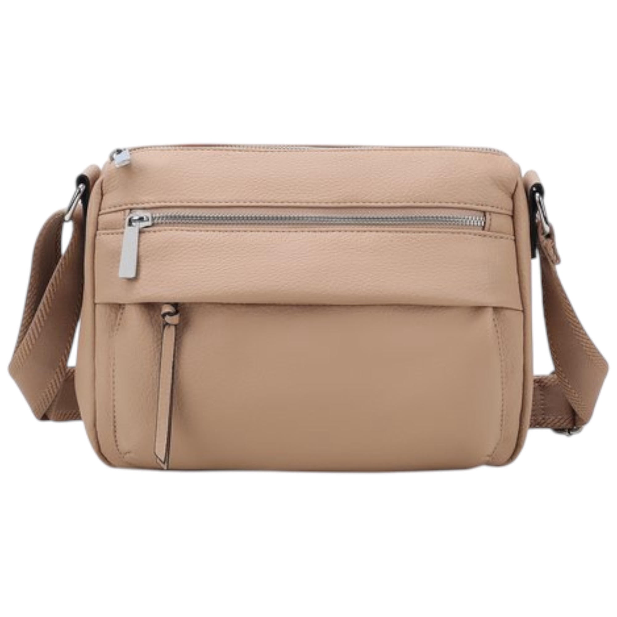 De tas heeft een ruim hoofdvak met ritssluiting, waarin je eenvoudig een portemonnee, telefoon, sleutels en zelfs een klein flesje water kwijt kunt. Extra ritsvakken aan de voor- en achterkant zorgen ervoor dat je kleinere essentials veilig en georganiseerd opbergt. De brede, verstelbare schouderband zorgt voor optimaal draagcomfort, of je de tas nu kort of lang draagt. Afmetingen van de tas: 27,5 x 21,5 cm