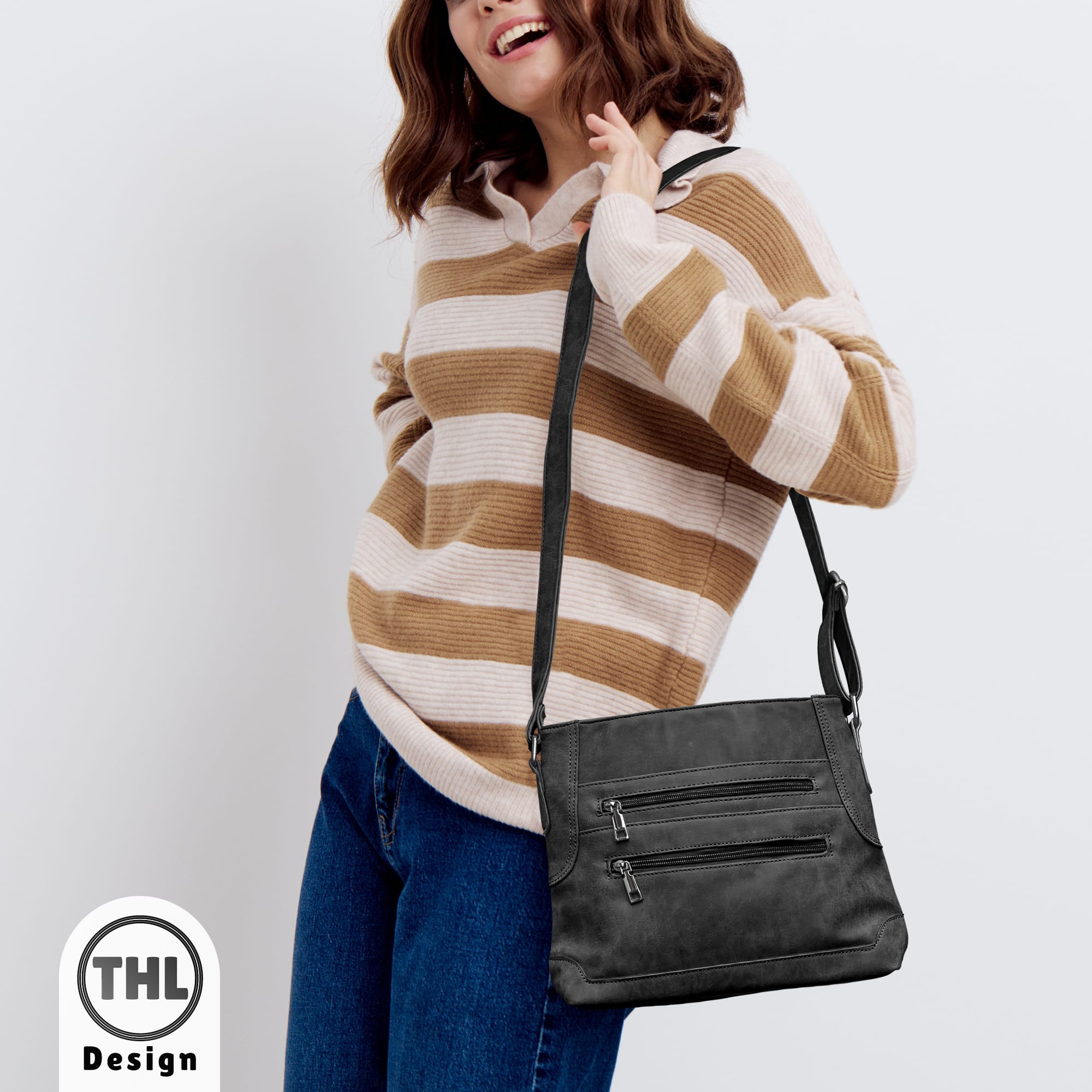 Een handige plat model schoudertas met een goede verstelbare schouderband. De zwarte THL crossbodytas heeft allerlei handig ritsvakken waar je overzichtelijk je spullen in op kunt bergen. Ben jij op zoek naar een tussenmaat schoudertas? Dan is deze tas ideaal voor jou. Je kan de lichtgewicht schoudertas overal mee naar toe nemen ideaal voor een dagje weg, op reis of bijvoorbeeld als je gaat fietsen.