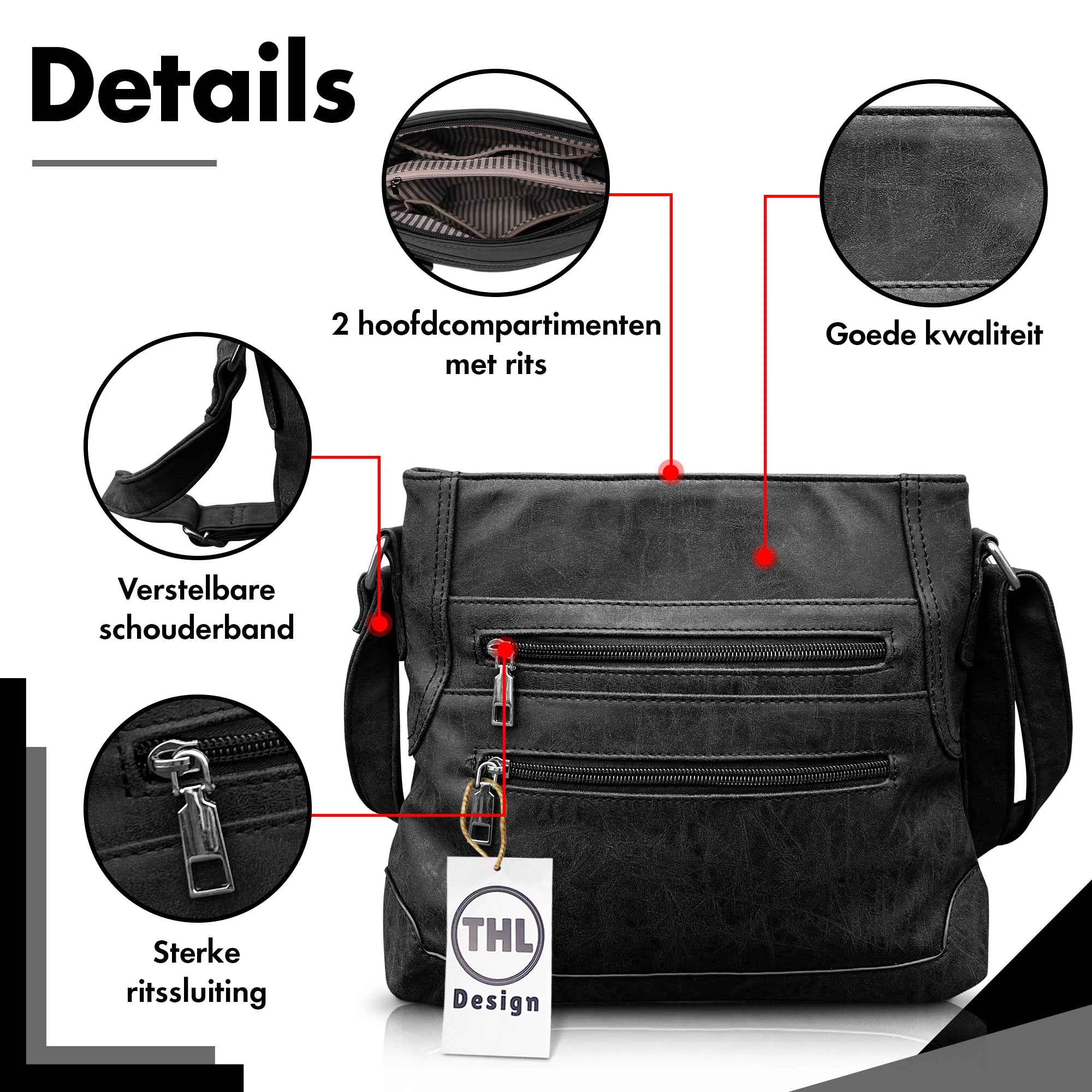 De tas heeft een goede verstelbare schouderband die je op iedere gewenste lengte kan dragen. Het materiaal van de tas is van hoogwaardig kunsleer en heeft een mooie vintage look uitstraling. Je mag van deze tas verwachten dat hij een lange tijd mee gaat, zonder hiervoor de hoofdprijs te betalen.