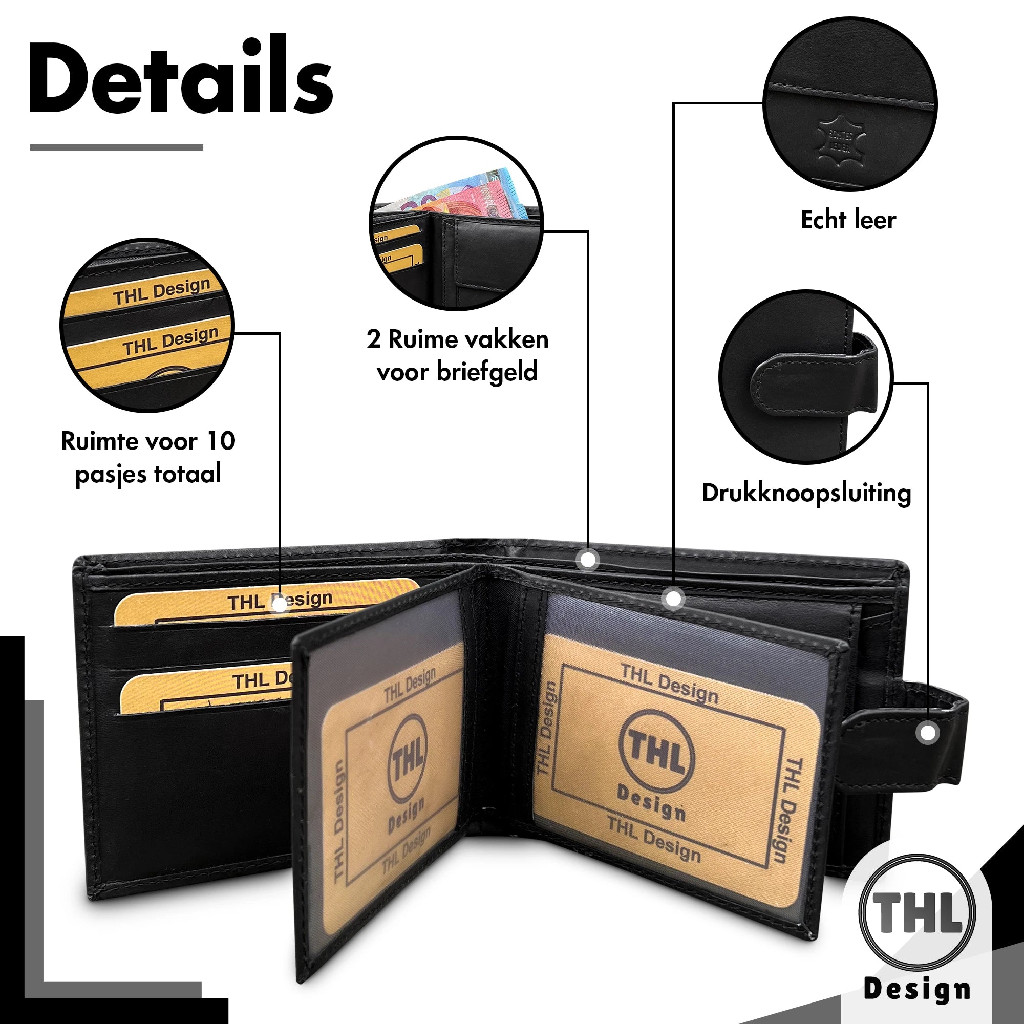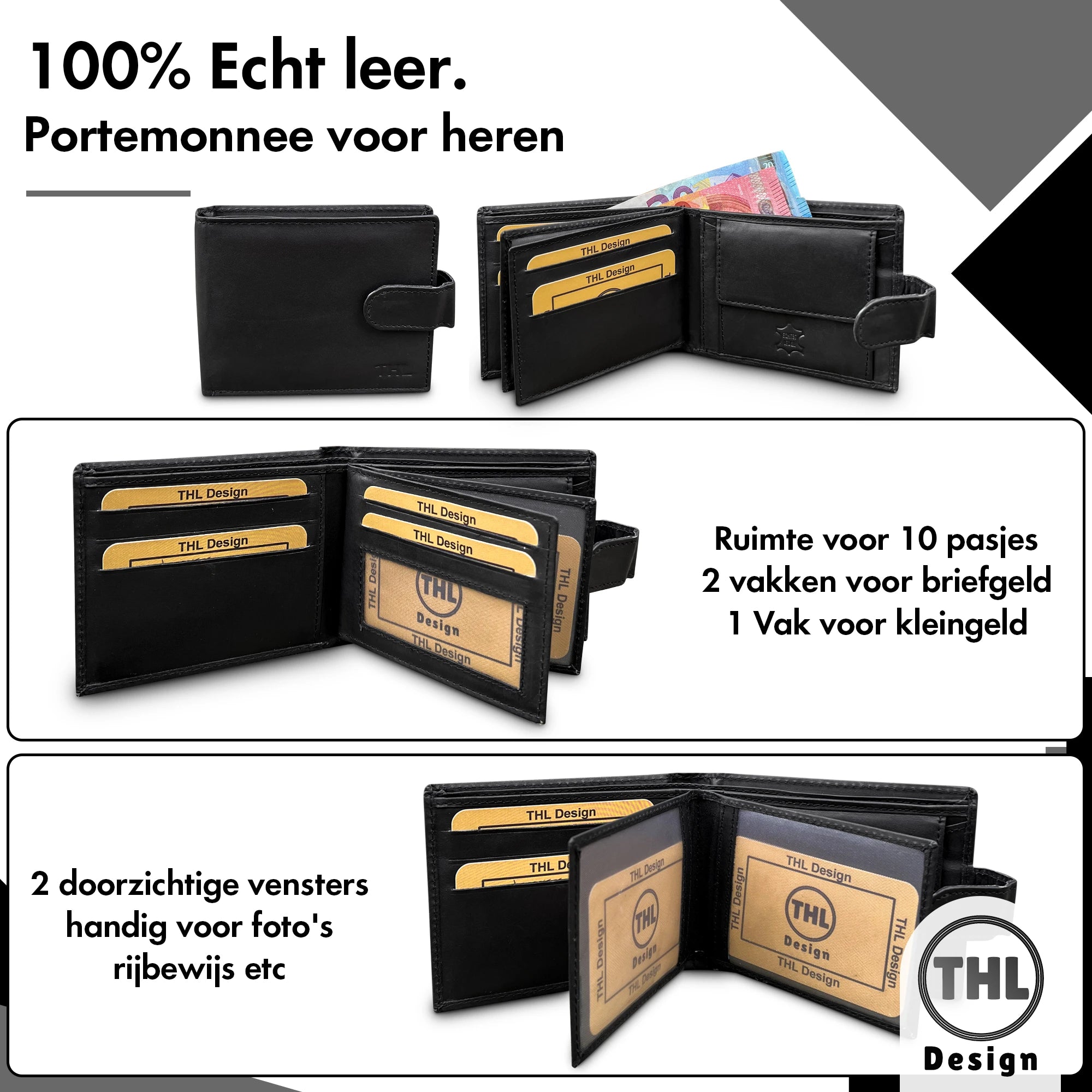 Mooie en praktische lederen heren portemonnee. De portemonnee heeft genoeg opbergruimte voor pasjes, briefgeld en kleingeld. Tevens is de portemonnee ook nog is afsluitbaar met een drukker. De portemonnee kan nooit zomaar openvallen omdat de drukker de portemonnee goed afsluit. Dit is de ideale formaat portemonnee die goed in je broekzak past en die genoeg opbergmogelijkheden heeft. Ondanks zijn compacte formaat heeft deze portemonnee genoeg ruimte voor briefgeld, kleingeld en pasjes. De portemonnee voor heren kun je eenvoudig openvouwen om de pasjes in op te bergen. Binnenin de portemonnee heb je ook 2 grote vensters om bijvoorbeeld je rijbewijs, ID kaart of OV kaart in op te bergen.