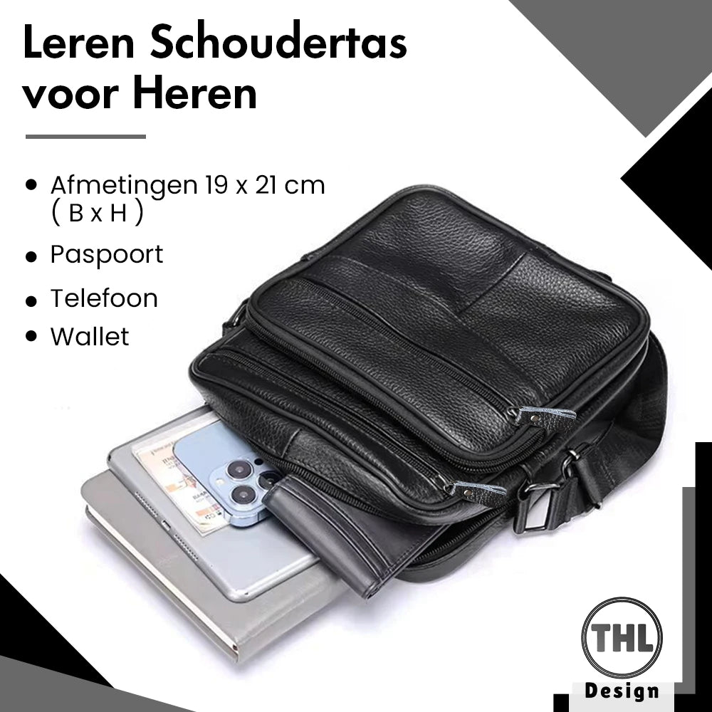 Wil jij al je belangrijke spullen veilig en overzichtelijk bij elkaar hebben? Zoek dan niet verder en bestel deze handige leren schoudertas!