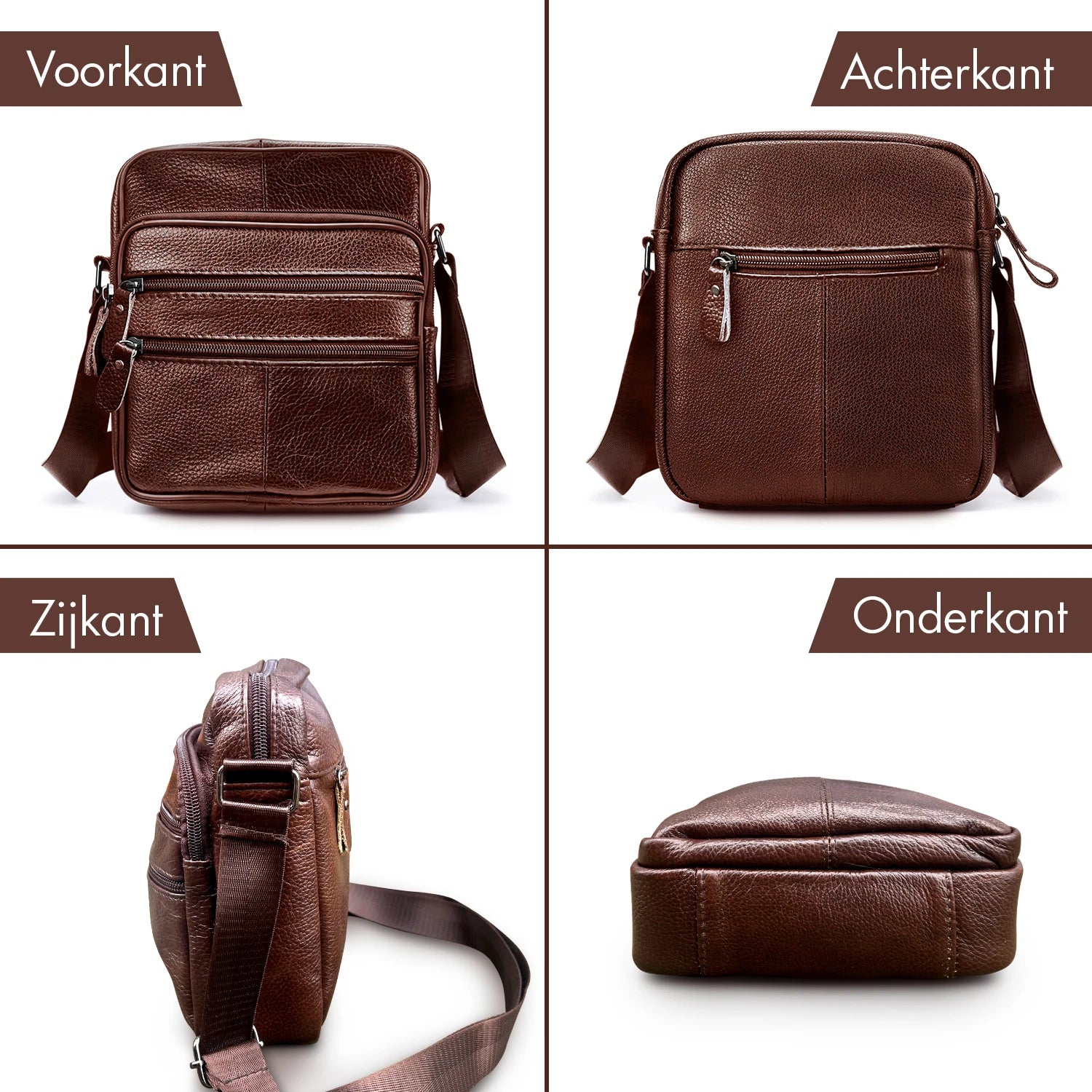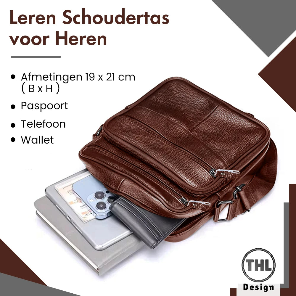 Wil jij al je belangrijke spullen veilig en overzichtelijk bij elkaar hebben? Zoek dan niet verder en bestel deze handige leren schoudertas!
