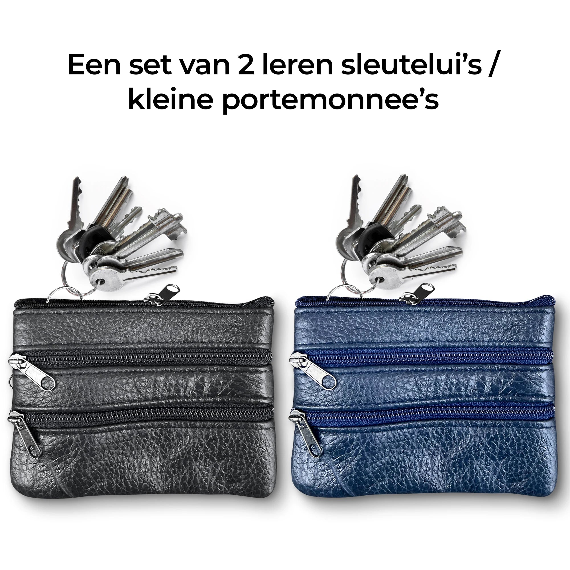 De leren sleuteletui's zijn leverbaar in verschillende kleuren zwart, rood, bruin en blauw