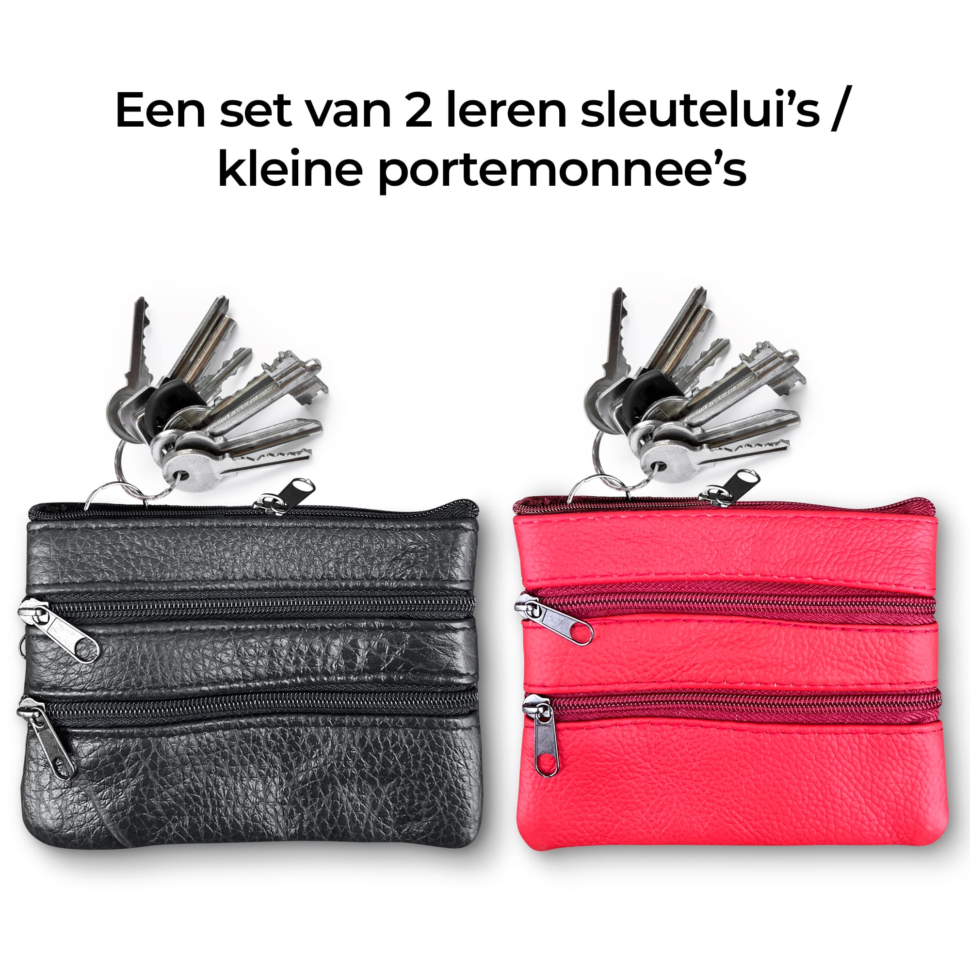 De leren sleuteletui's zijn leverbaar in verschillende kleuren zwart, rood, bruin en blauw