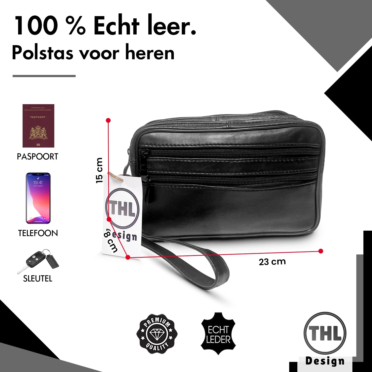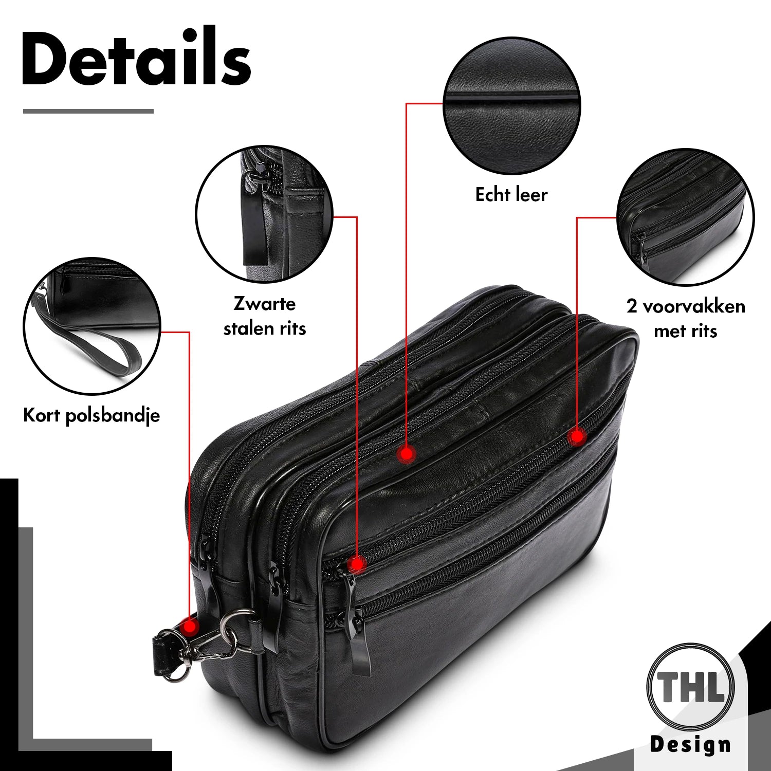 De zwart lederen polstas / handtas van het merk THL Design is een gebruiksvriendelijke tas met verschillende vakjes om je spullen georganiseerd op te bergen. Gemaakt van hoogwaardig leer van optimale kwaliteit is deze polstas niet alleen een praktische maar ook een mooie tas. Bij de polstas zit een handig afneembare polsband zodat je de tas overal mee naar toe kan nemen.