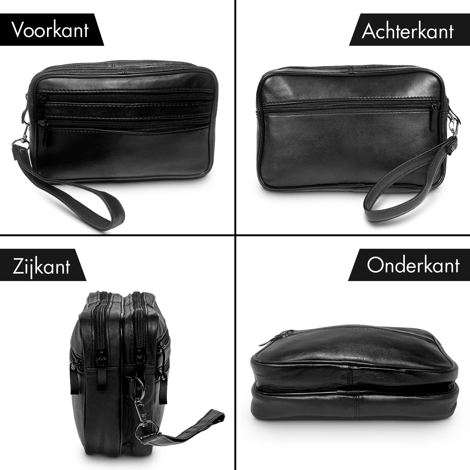 Het polstasje heeft in totaal 5 handige rits vakken ideaal om al je spullen in op te bergen. Aan de bovenkant heb je 2 royale rits vakken ook heb je 2 rits vakjes aan de voorkant en een handig rits vakje aan de achterkant. Je heb dus genoeg ruimte om al je belangrijke spullen op te bergen denk bijvoorbeeld aan je paspoort, sleutels , mobiele telefoon etc. Deze polstas van echt leder is voor wie spullen graag veilig en geordend opbergt en toch alles binnen handbereik heeft.