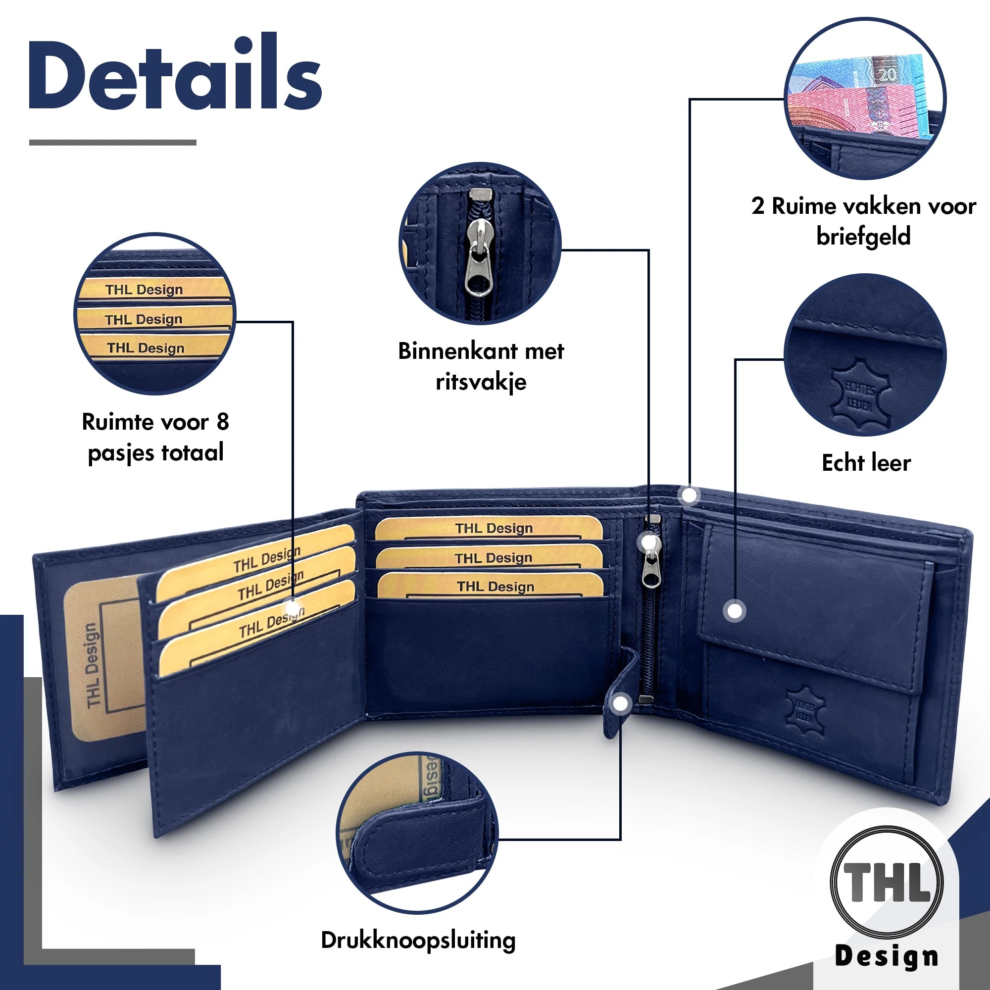 • Kleingeldvak – veilig afgesloten met een drukknoop voor je muntgeld