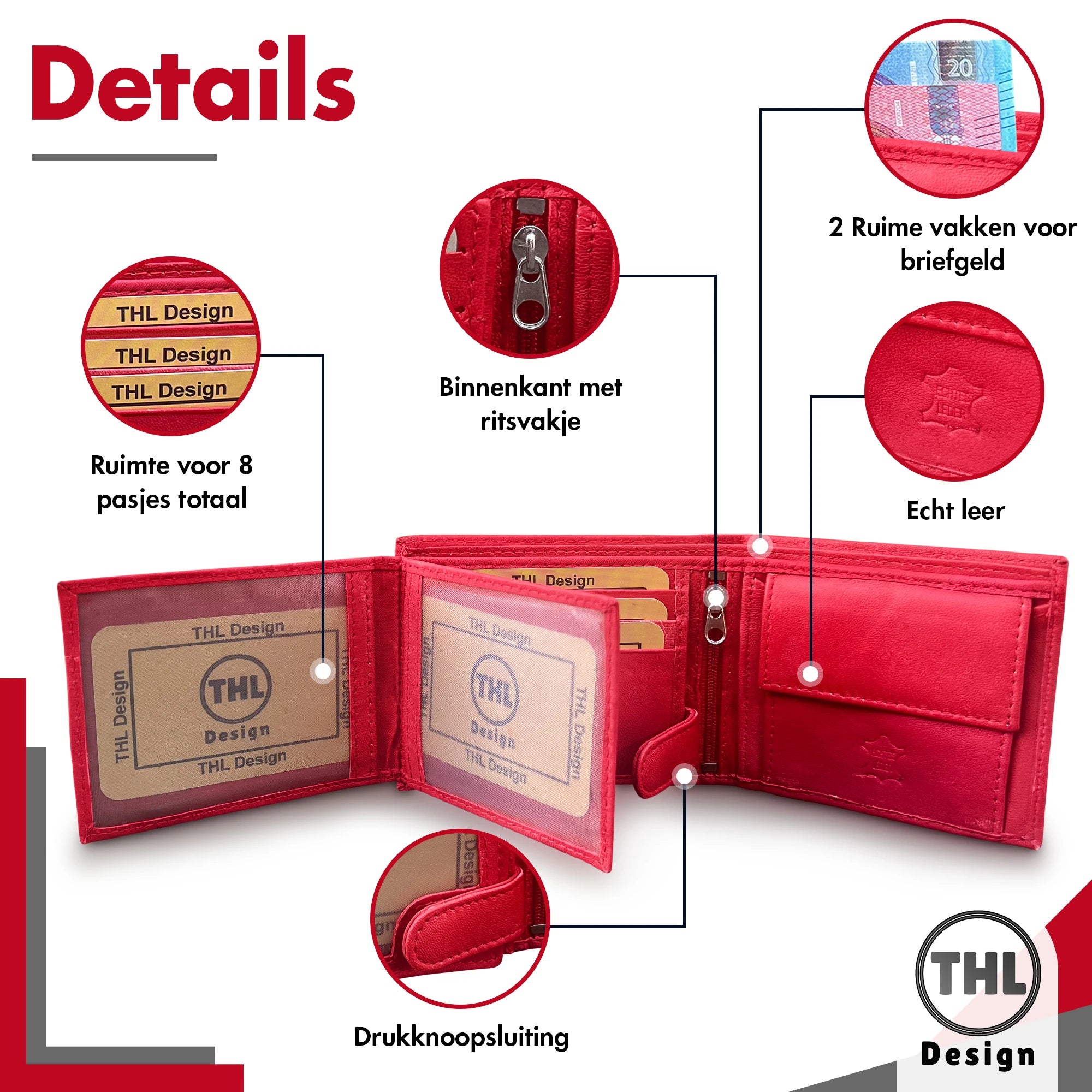 Deze leren portemonnee voor dames en of heren is de meest verkochte portemonnee dankzij zijn praktische indeling en stijlvolle uitstraling. Gemaakt van echt leer, biedt deze rode portemonnee een compact, laag model dat makkelijk in je jas of tas past. De billfold is perfect voor dagelijks gebruik en heeft voldoende opbergmogelijkheden.