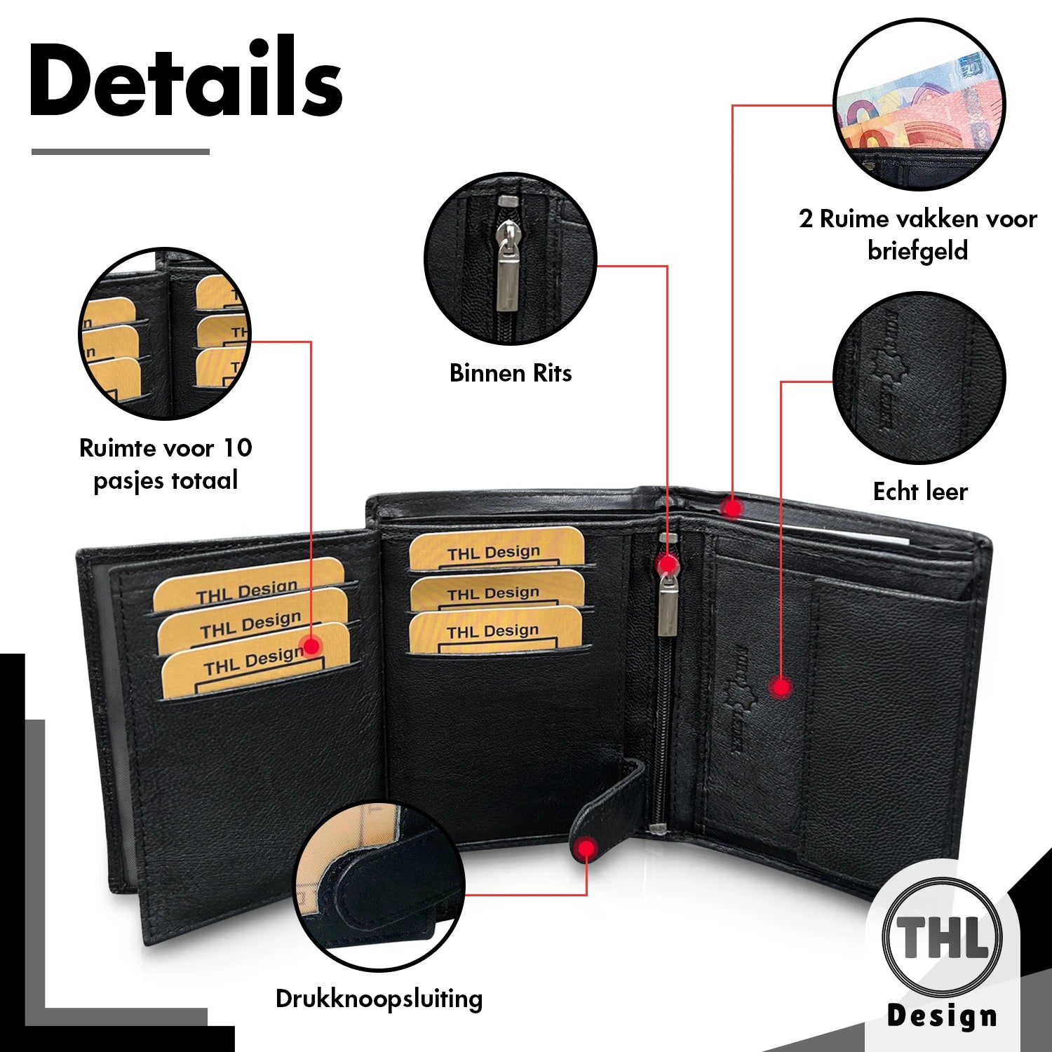 Stevige en echte leren zwarte portemonnee van het merk THL Design. In deze portemonnee voor heren en/of dames is genoeg ruimte voor briefgeld, kleingeld en pasjes. De hoge model billfold portemonnee heeft genoeg opberg mogelijkheden en is daardoor zeer praktisch in gebruik. Dit model is één van de absolute BESTSELLER onder de portemonnees. Bent u opzoek naar een mooie en praktische leren portemonnee? Zoek dan niet verder en bestel deze portemonnee!