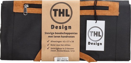 Een goede sterke zwarte boodschappentas met leren handvatten. Super handige tas ideaal tijdens het doen van de boodschappen. De boodschappentas van het merk THL Design heeft genoeg ruimte met een royaal hoofdvak wat zorgt voor genoeg opbermogelijkheden.