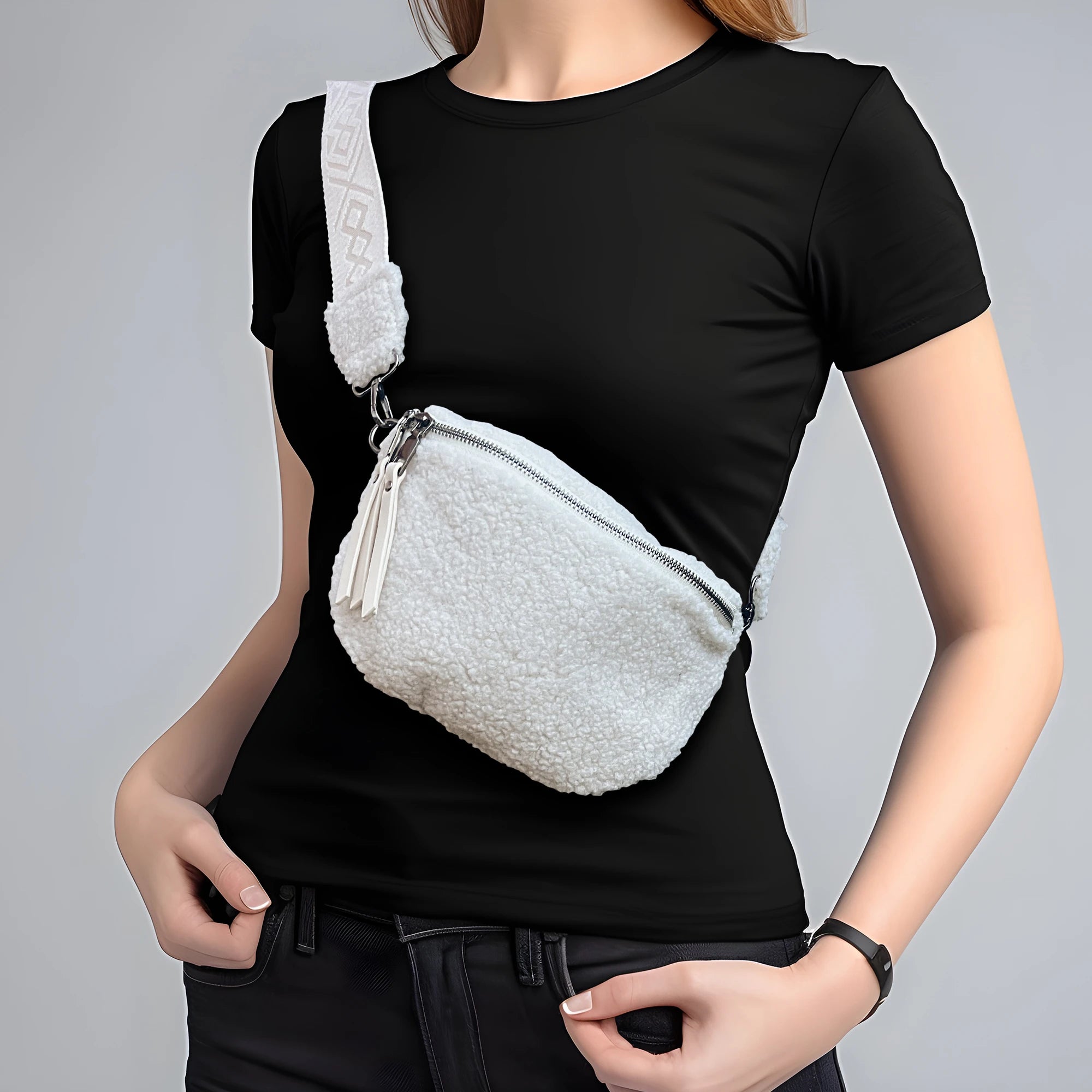 Deze stijlvolle schoudertas combineert functionaliteit met de laatste modetrends. De zachte teddy stof geeft een warme en modieuze uitstraling, perfect voor het najaar.